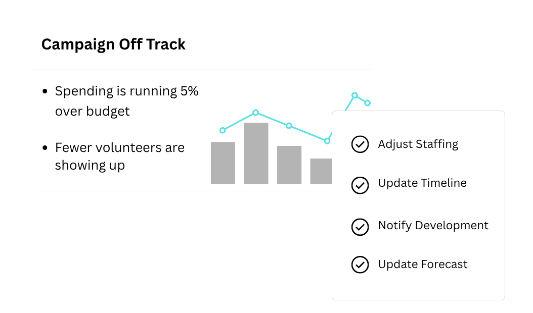 As a development leader, you are expected to know where funding stands, what is shifting, and where your team should focus next. Catch donor movement, campaign patterns, and signals that are easy to miss when information lives in different places.